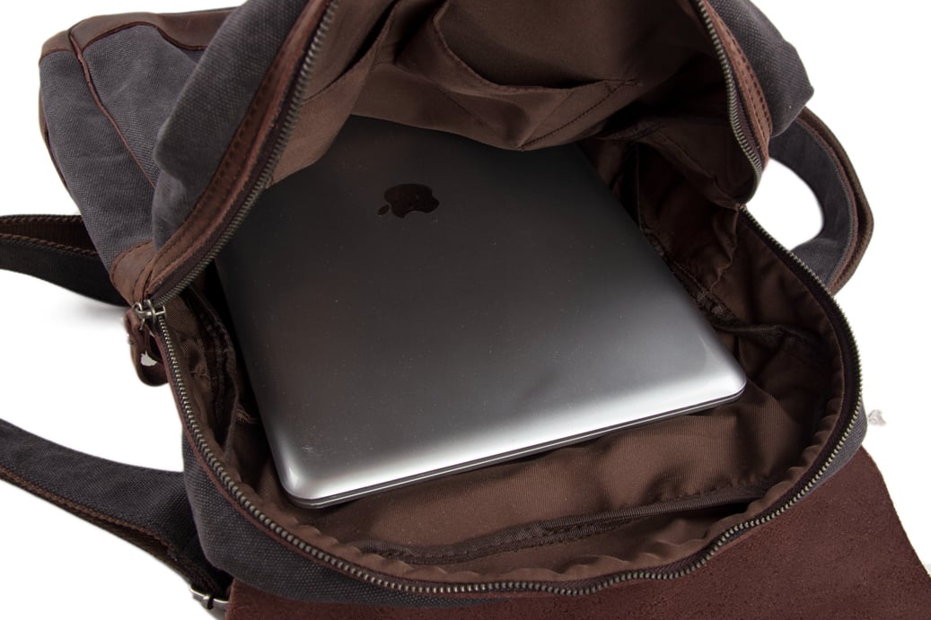 14'' Canvas Leather Backpack Rucksack School Backpack Casual Backpack 12032