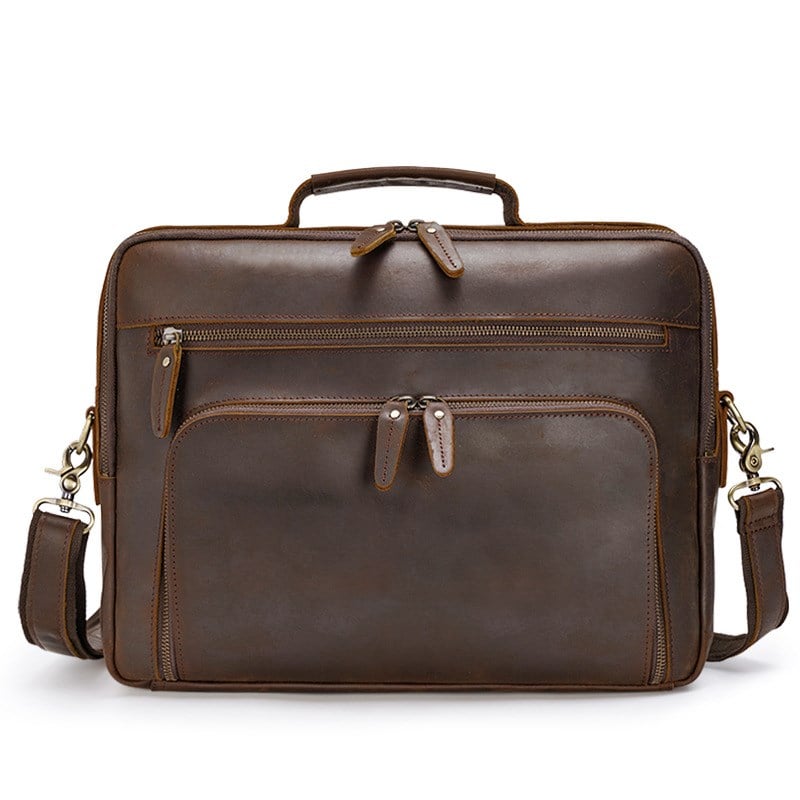 Handmade Full Grain Leather Briefcase, 15.6'' Laptop Bag, Business Handbag CN1488
