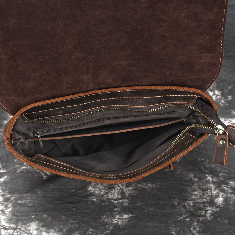 We use selected thick full grain crazy horse leather, quality hardware and cotton fabric to make the bag as good as it is. This bag is perfect as your everyday bag, which can fit for a 14'' Laptop, an IPAD, A4 files, books, magazines, as well as many accessories.