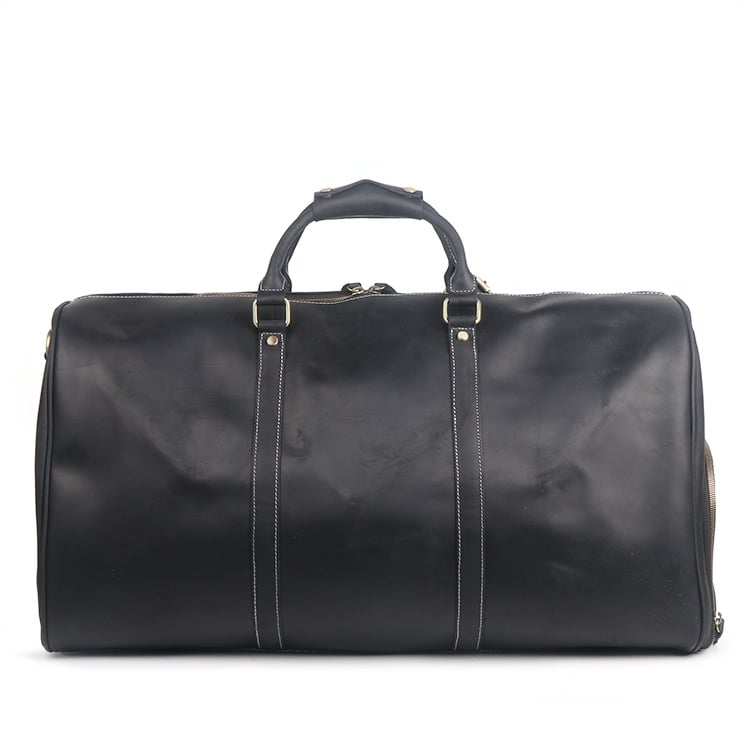We use selected thick genuine top grain cowhide leather, anti-rust hardware and cotton fabric to make the bag as good as it is. This bag is perfect as your everyday bag, which can fit for 15'' laptop/Macbook, many clothes, an IPAD, A4 files, books, magazines, as well as many accessories. Also, there is one shoe compartment on the side of the bag, which is very easy to put in and take out the shoes.