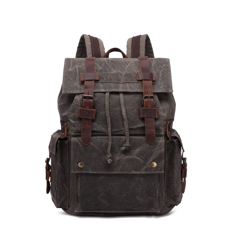 Waxed Canvas Backpack, Men Leather Rucksack, Travel Backpack, Waterproof Canvas Leather Backpack YC01